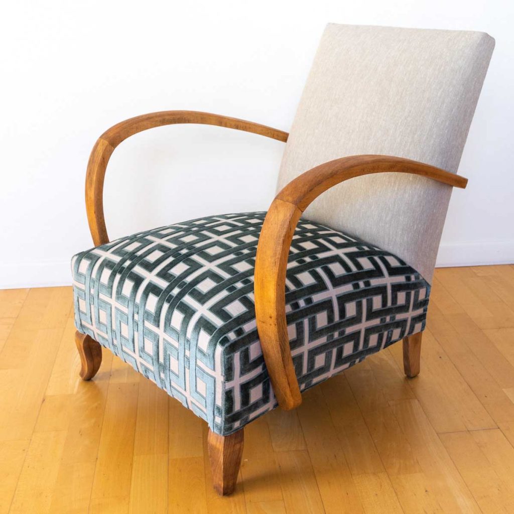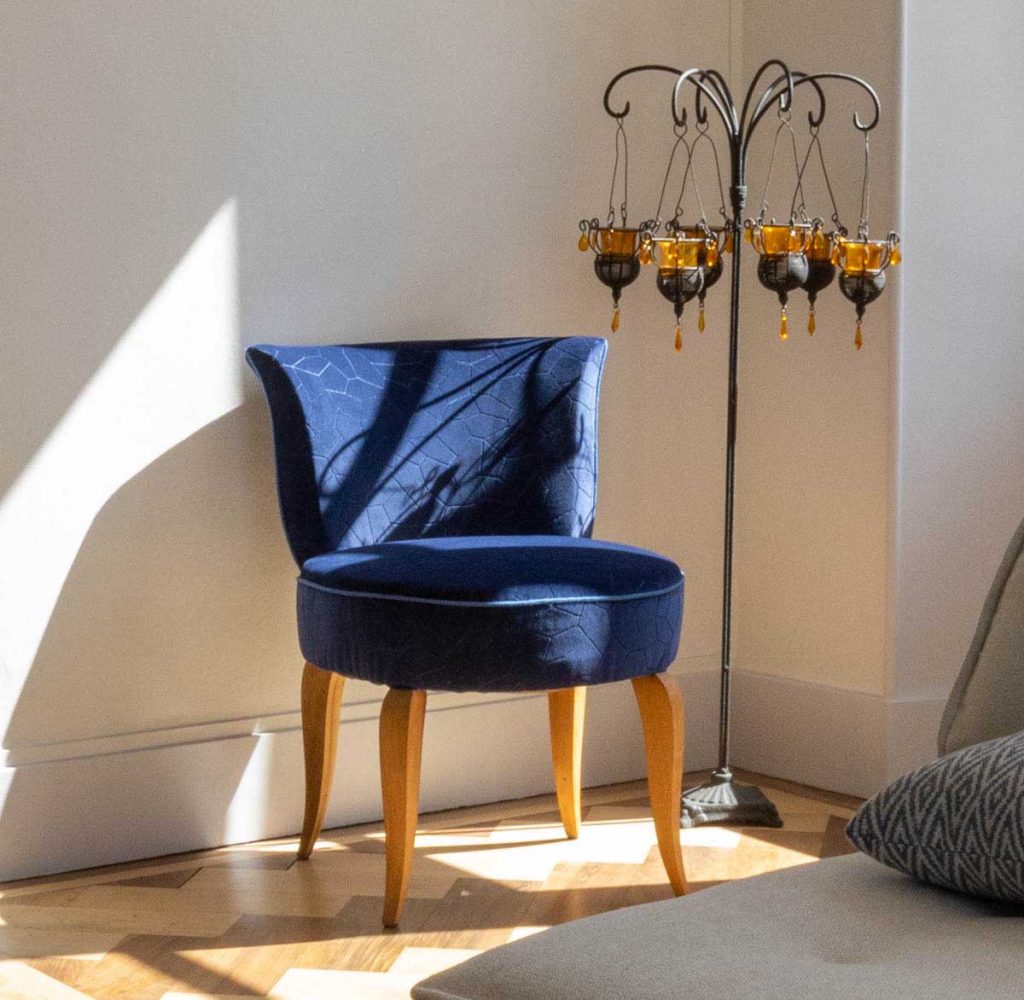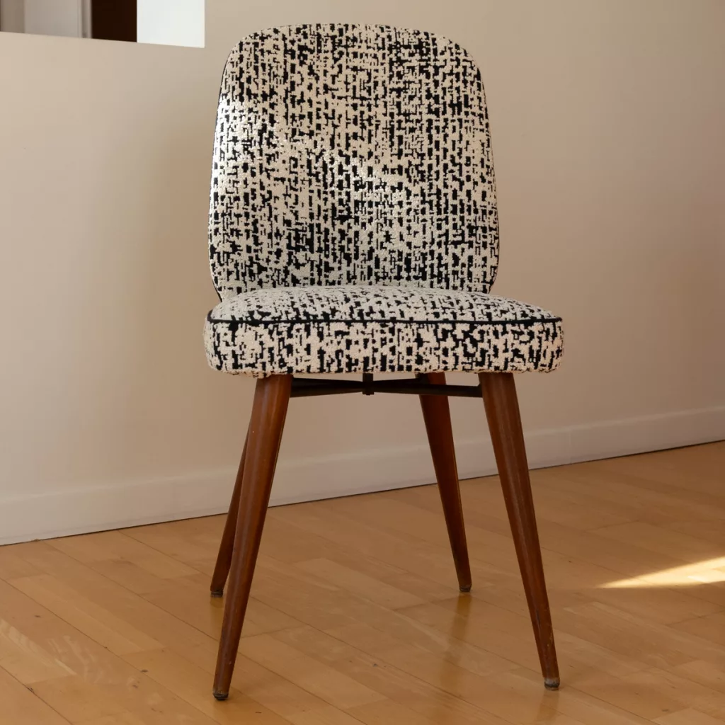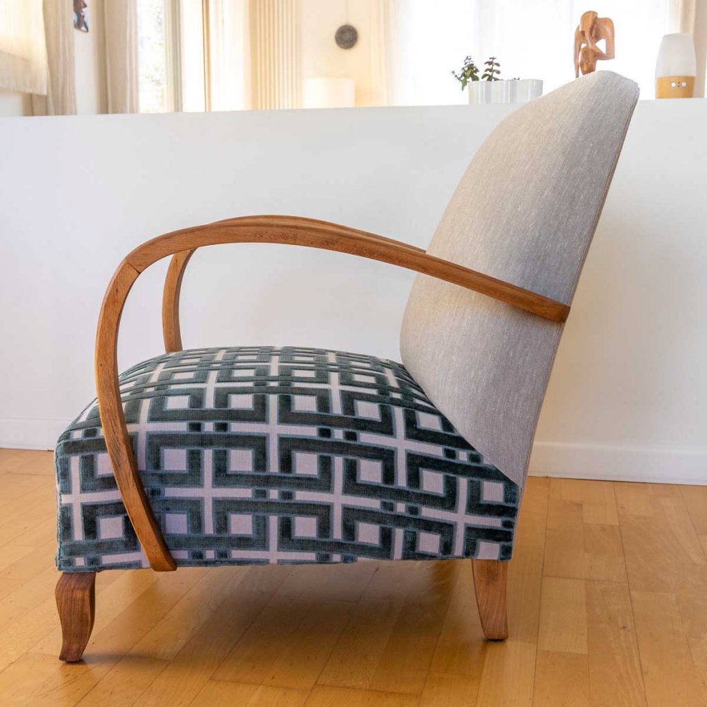 De temps en temps, je chine des sièges anciens que je restaure entièrement avec mes tissus en impression végétale ou des tissus d’éditeurs soigneusement sélectionnés.