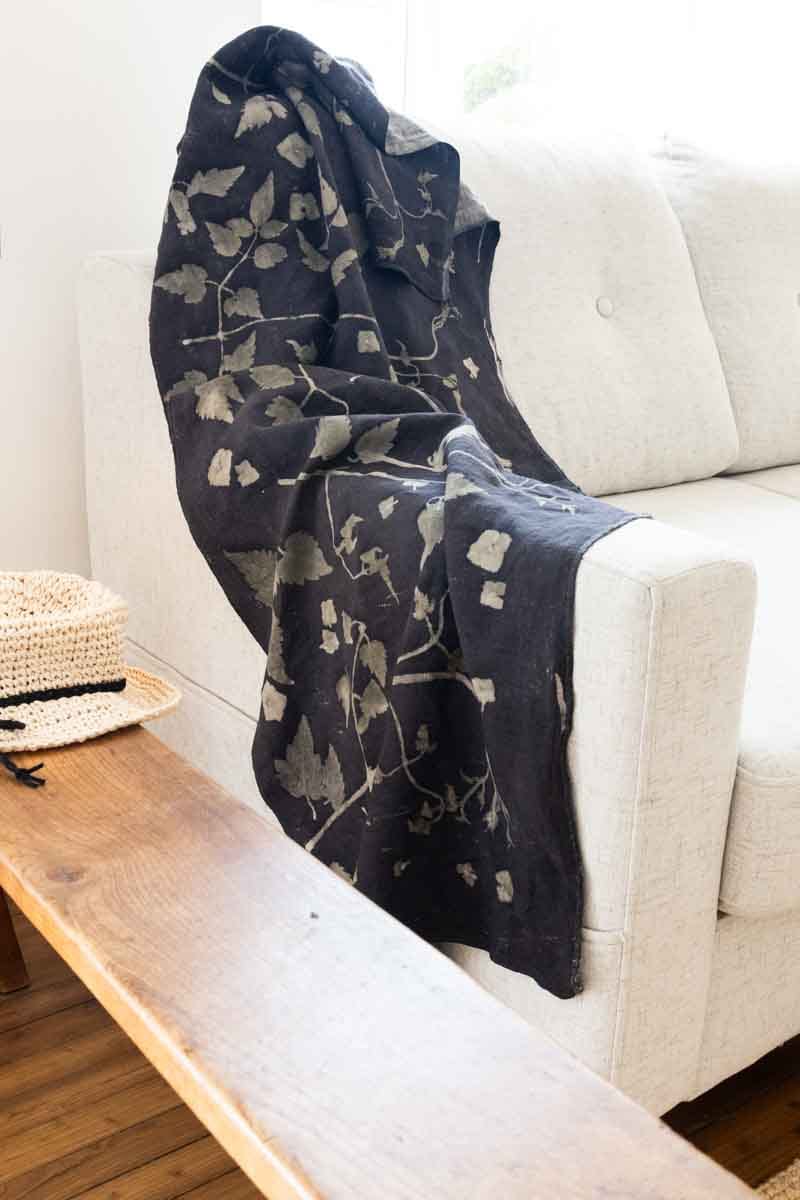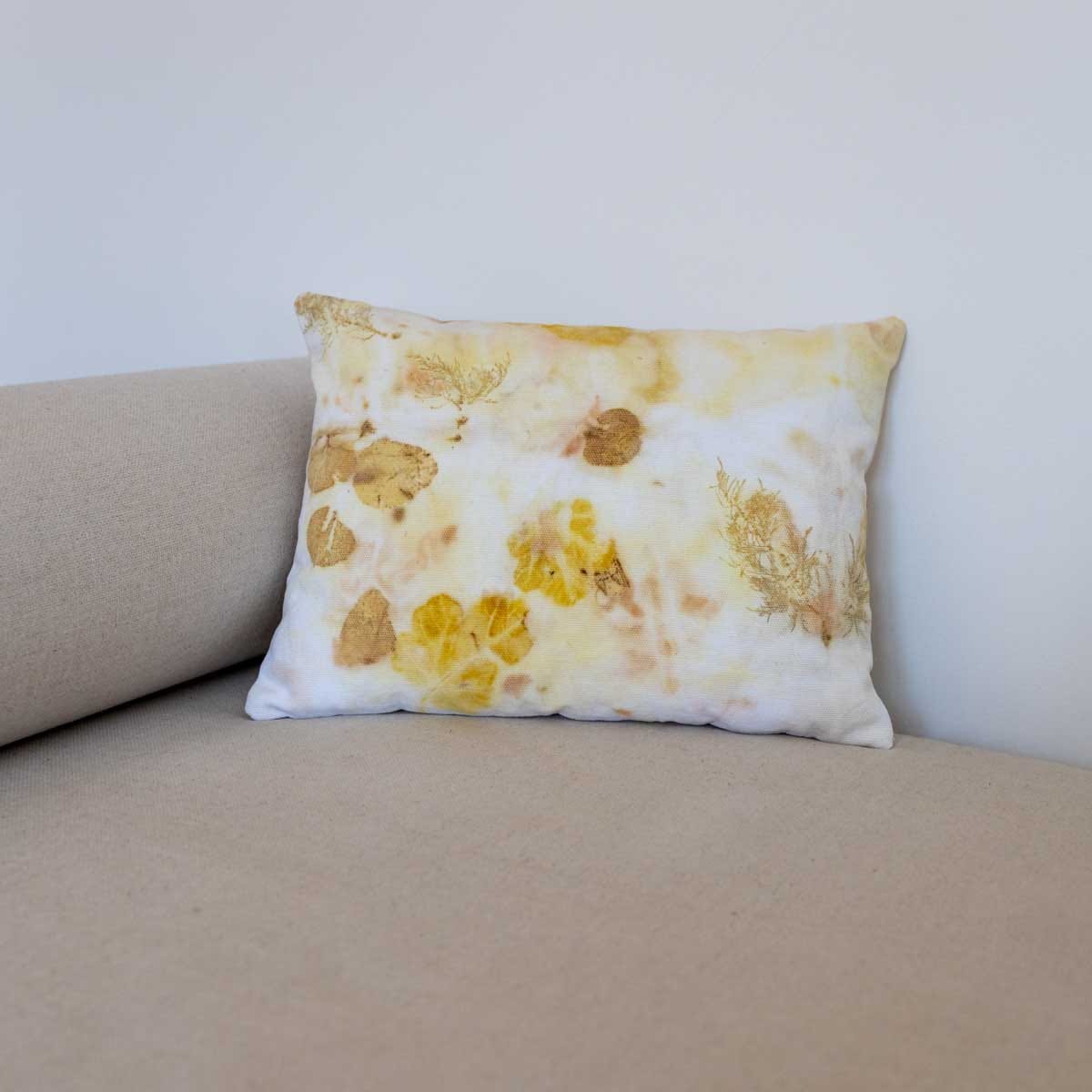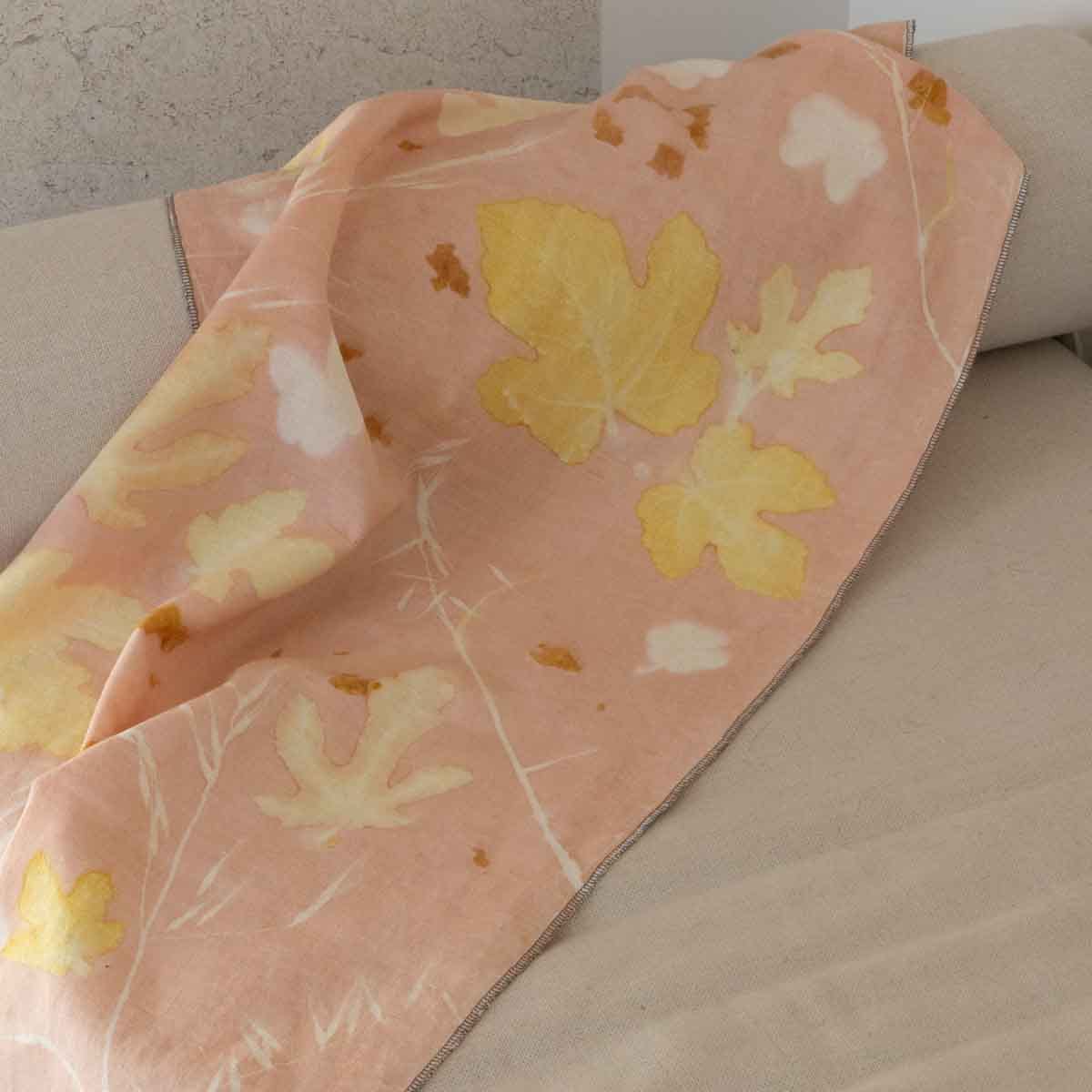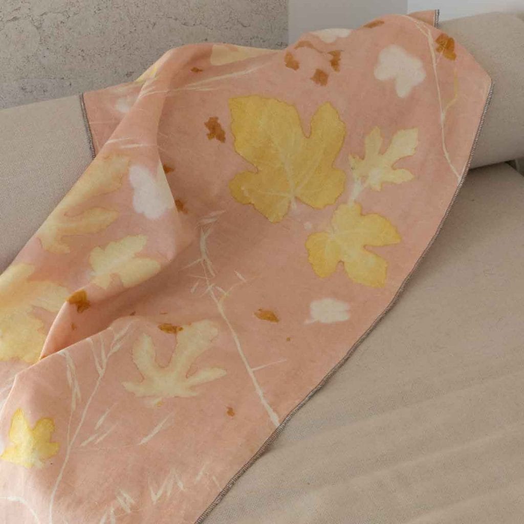 Création textile unique en impression végétale : mes tissus deviennent coussins, abat-jours, plaids, décorations murales…