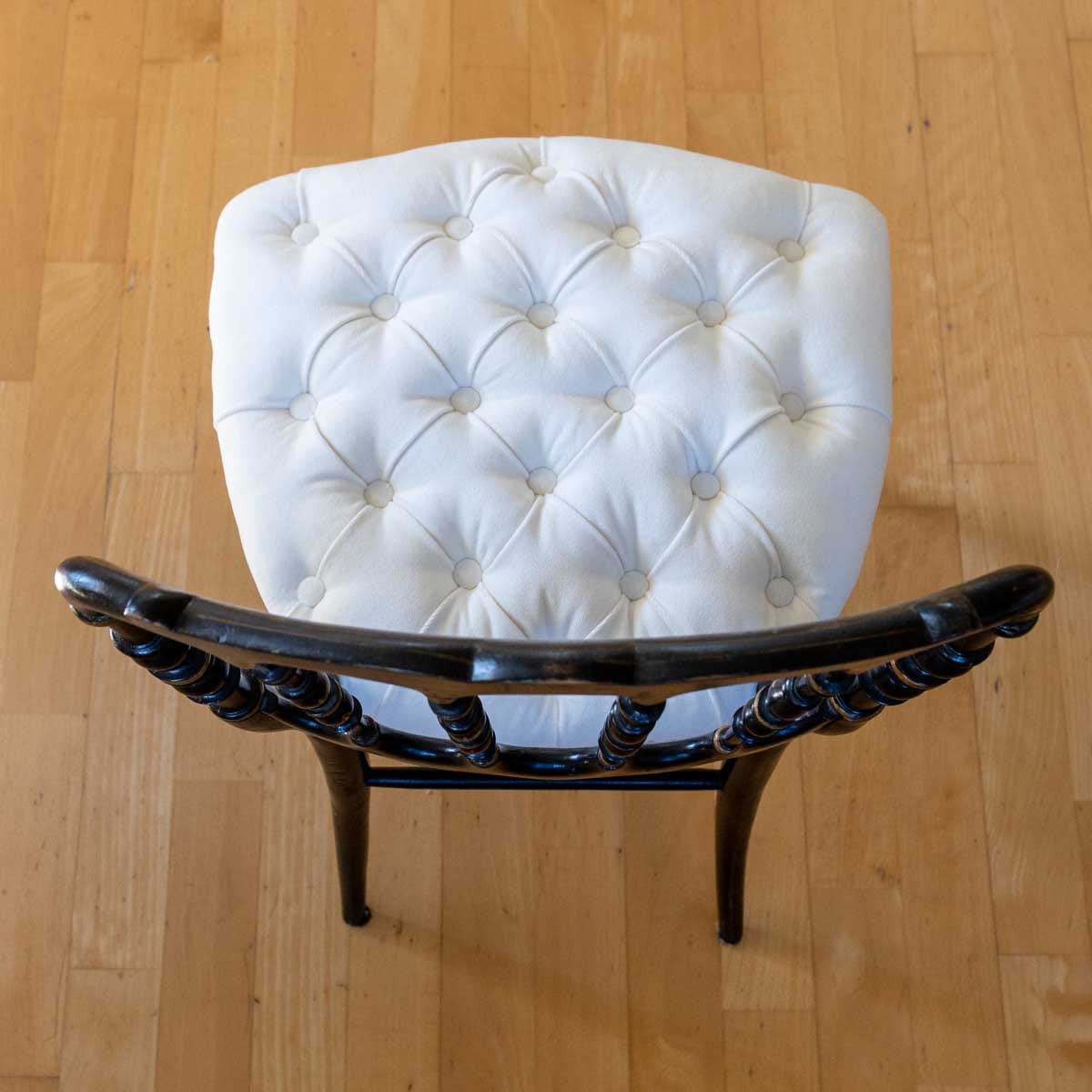 " Assise capitonnée en tapisserie traditionnelle sur chaise Napoléon III. "