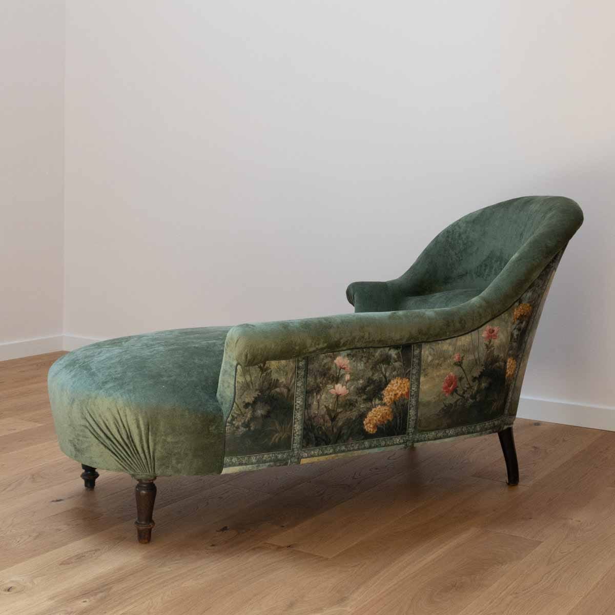 " Esprit bohème pour cette méridienne crapaud entièrement retapissée en traditionnel "