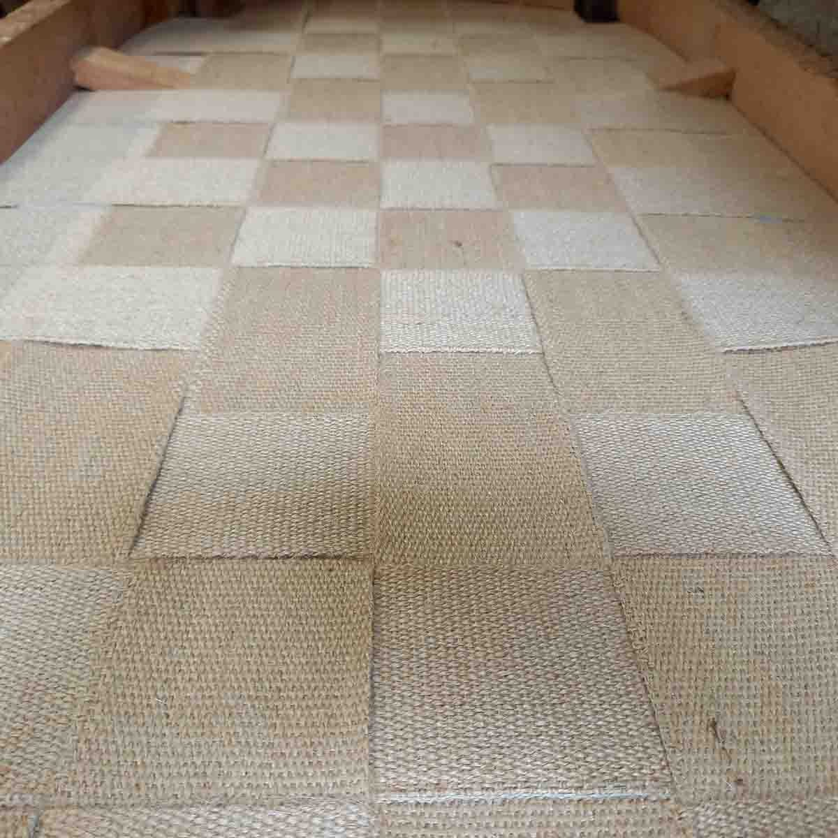 "Méridienne ancienne en cours avec des sangles en jute"