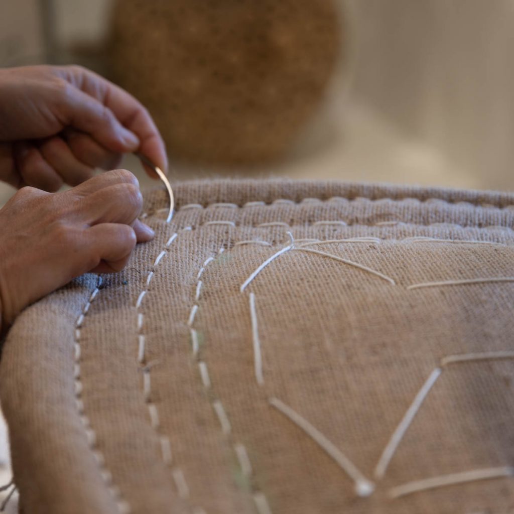Je privilégie les matériaux naturels : sangles et toiles de jute ou coton, crin végétal et animal, corde en chanvre et ficelles en lin…